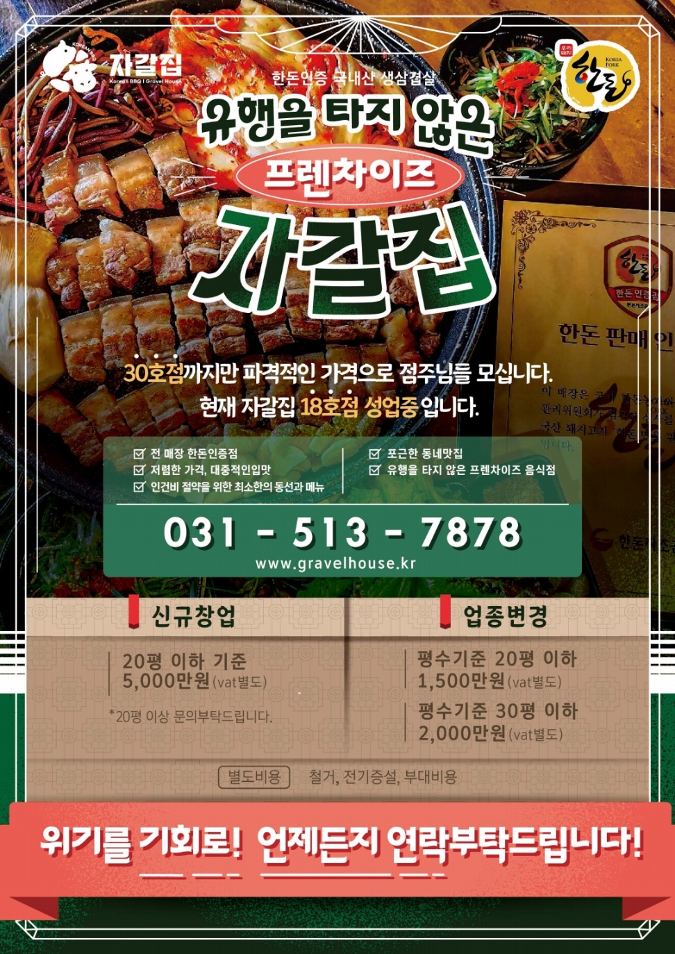 질 좋은 삼겹살을 합리적인 가격으로 편하게 드실 수 있는 ‘자갈집’입니다.